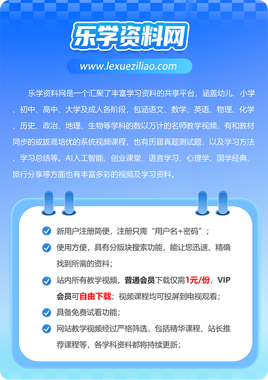 樂學(xué)資料網(wǎng),一個專業(yè)的學(xué)生/家長/老師學(xué)習(xí)/輔導(dǎo)/教學(xué)資料下載的網(wǎng)站平臺,提供的資料清單如下: